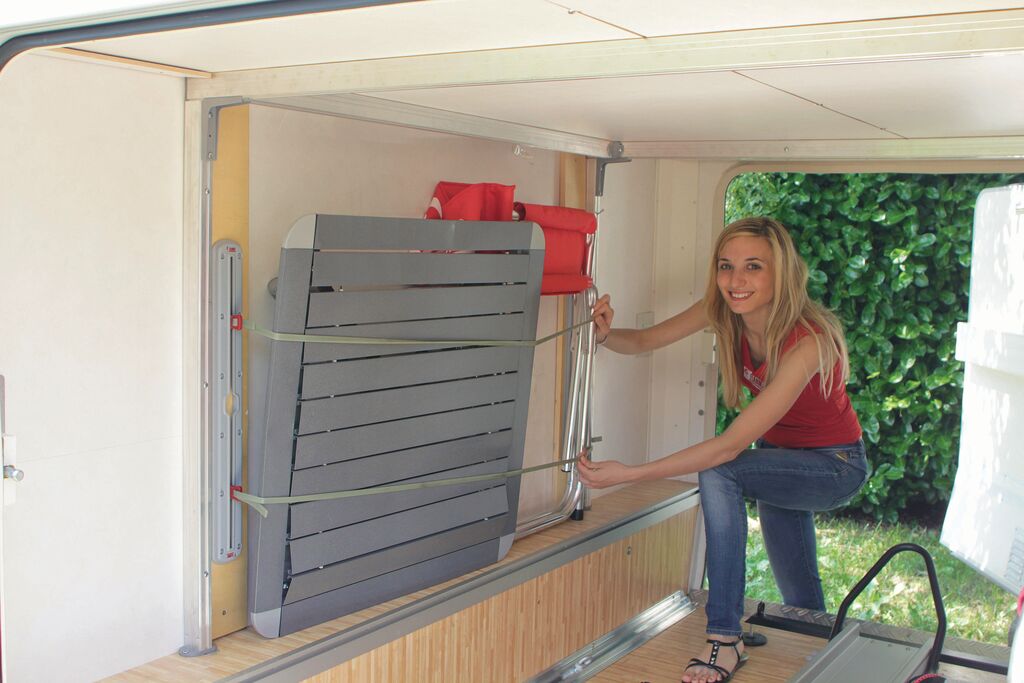 Para inmovilizar objetos, como mesas, sillas o ruedas de repuesto, en los arcones o el garaje de la autocaravana.